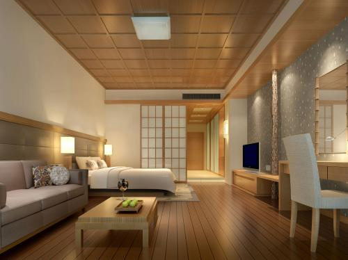 日式風格酒店設(shè)計上講究空間的流動感及分割感,不同的空間在設(shè)計上是一個整體。日式風格裝飾材料多采用木、藤、麻等純天然的材料,講究素雅,給人寧靜閑適的視覺體驗。在顏色上多為原木色,木質(zhì)家具更顯得與世無爭,適合休閑度假類的酒店裝修。