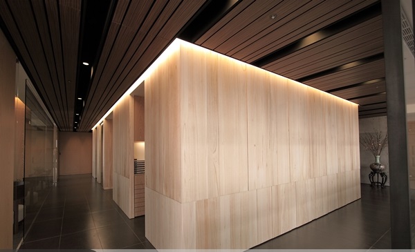 淺色木墻面打造的隔間墻,營造放松舒適的氛圍。