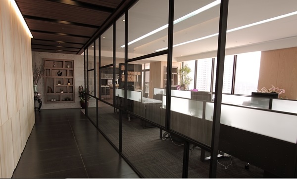 舍棄以往傳統(tǒng)冰冷的辦公室設(shè)計,設(shè)計師以溫潤的北歐風(fēng)為定調(diào),以沉穩(wěn)大器的中性色為主色調(diào),運(yùn)用各式木建材、鐵件與石材,展現(xiàn)樸質(zhì)內(nèi)斂的人文氣息;玄關(guān)是公司的重要門面,給予來訪賓客對于公司的第一印象,因此玄關(guān)規(guī)劃就顯得格外重要,俐落的垂直木條墻面,掛上公司的招牌和 LOGO ,搭配大器時尚的大理石柜臺,讓賓客一進(jìn)門立刻感受到充滿質(zhì)感品味的空間氛圍,一旁的清水模墻面結(jié)合木展示柜設(shè)計,成為擺放藝術(shù)品的最佳場所,善用自然元素的特性,更加凸顯藝術(shù)品的質(zhì)感。