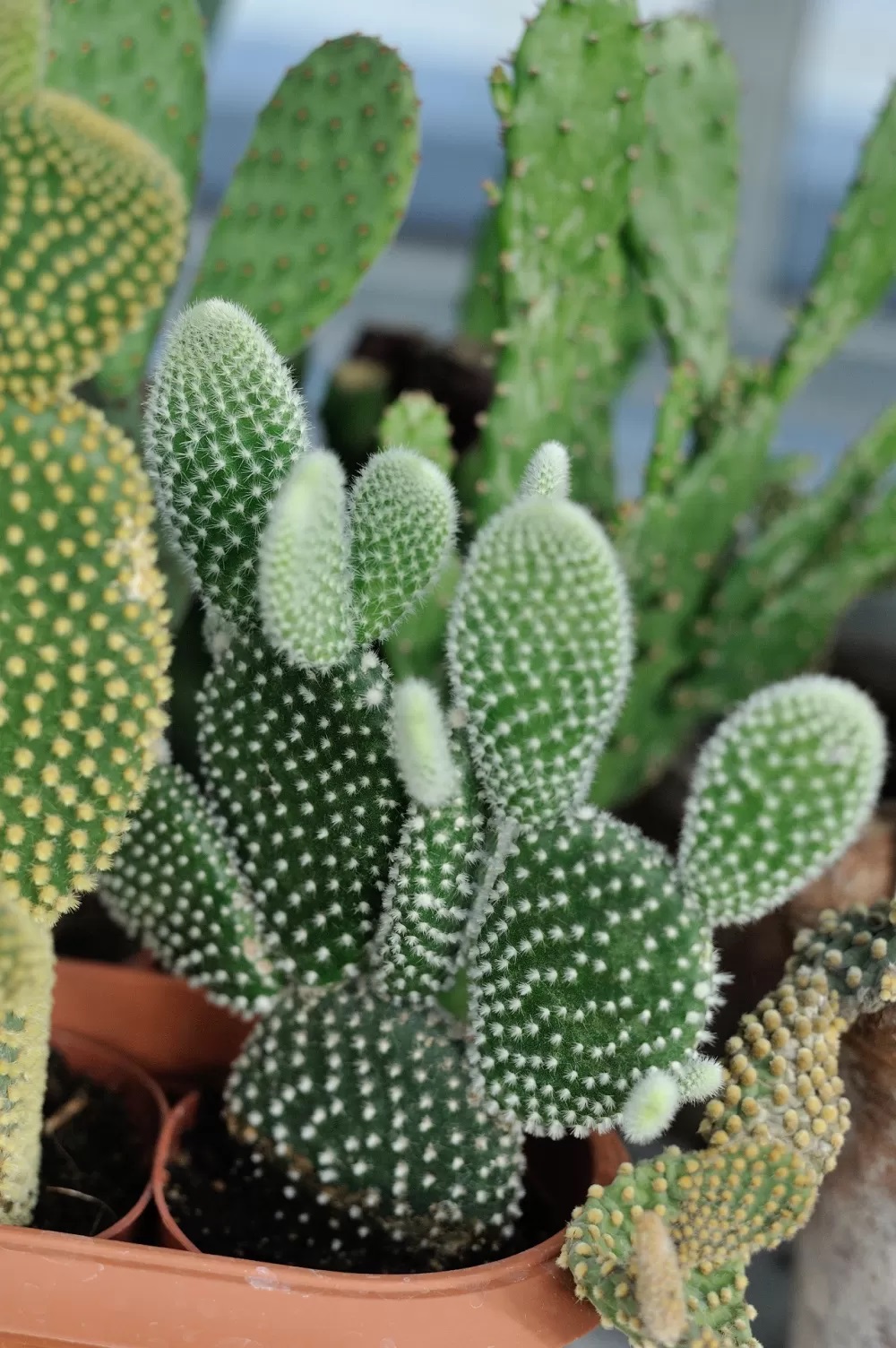 白烏帽子原產(chǎn)于墨西哥,為團扇仙人掌的一種,是市面上常見的多肉植物,喜歡光照充足且干燥的環(huán)境,易于照顧,約1~2周澆水一次即可。白烏帽子的外型扁扁圓圓的,像極了米老鼠的耳朵,可愛又討喜,但外表有著看起來細小、毛毛的芒刺,在觀賞或照顧時要小心別被刺到了,否則要將刺拔出來可是會有些痛苦阿!